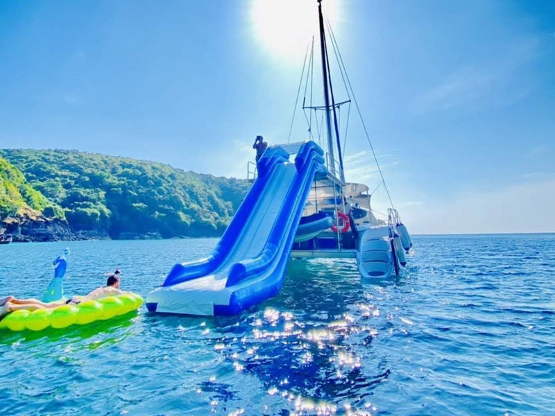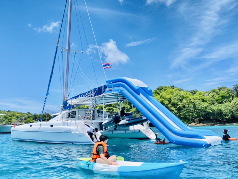 Experience the ultimate luxury private yacht charter as you sail around the pristine islands of Coral Island, Raya Island, and Maiton Island in Phuket. Explore the beauty of these stunning destinations aboard a sleek catamaran, indulging in the finest amenities and personalized service. Immerse yourself in the tranquil waters, white sandy beaches, and vibrant marine life while creating unforgettable memories on this exclusive island-hopping adventure.